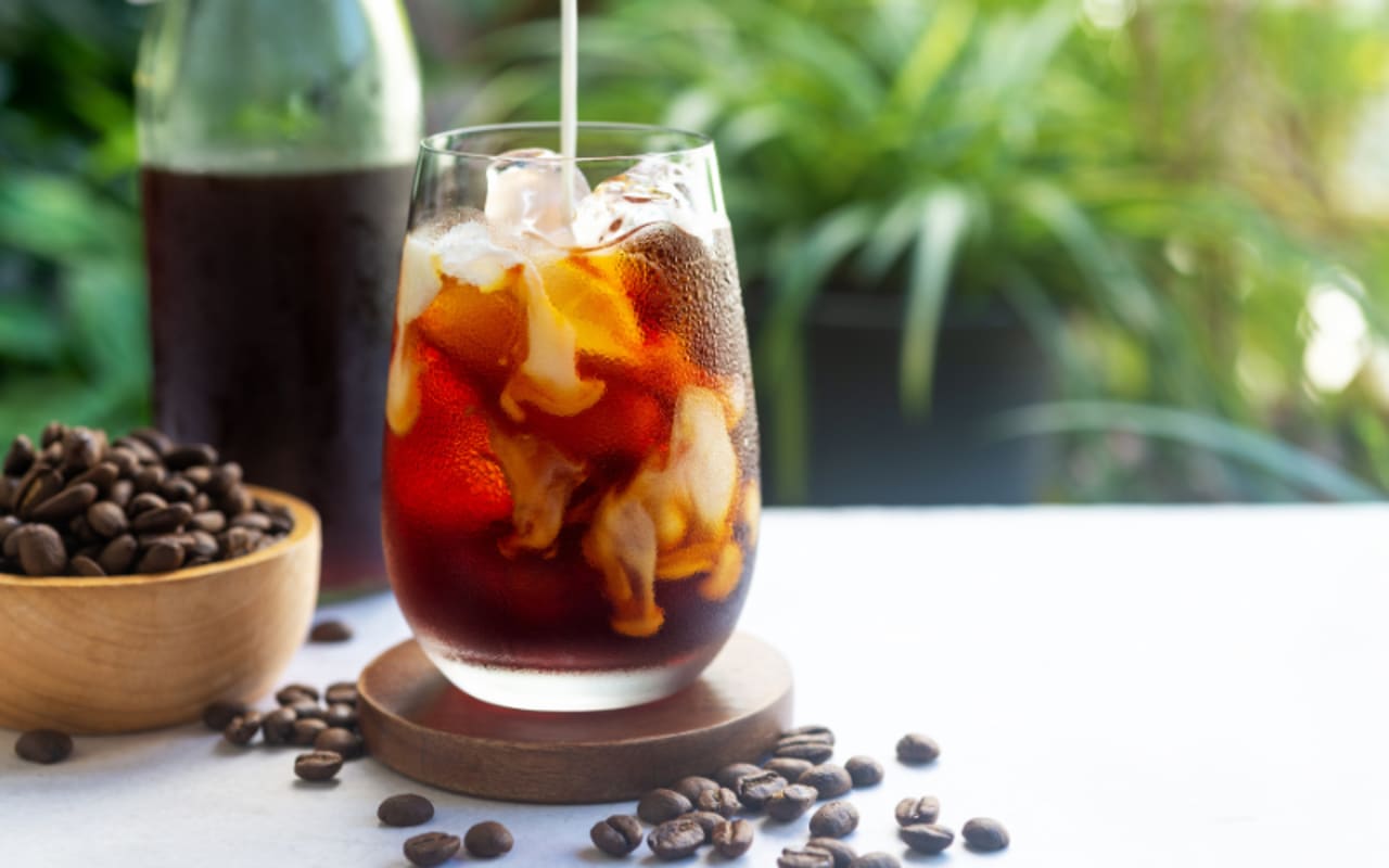 This one’s the OG of cold coffees. Just mix coarse coffee grounds with cold water (1:4 ratio), let it sit in your fridge for 12-24 hours, and strain it through a filter. It’s smooth, strong, and perfect with a splash of milk or some sweet creamer. Pro tip: make a big batch and keep it in the fridge for a quick grab-and-go vibe.