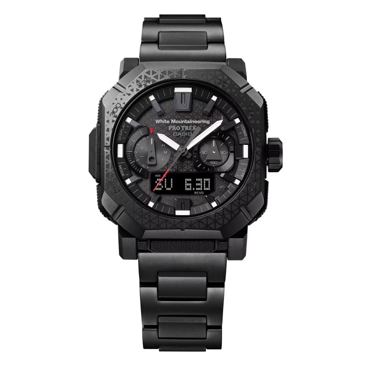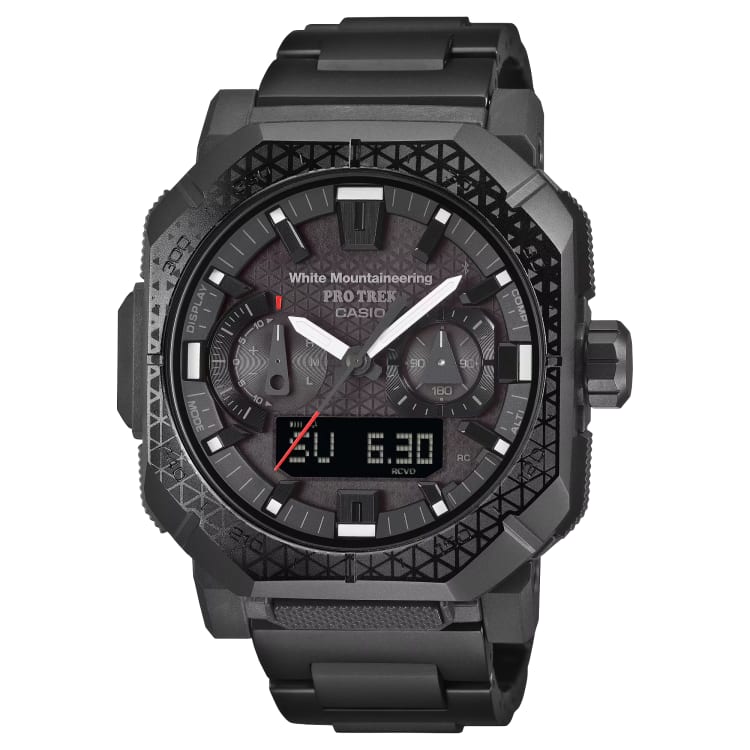 This is actually the second time Pro Trek and White Mountaineering have worked together. The first collaboration was built around the more entry-level PRJ-B001 Series and sold out entirely. This new effort, however, steps things up considerably. It's based on the PRW-B1000, which sits at the top of the Pro Trek lineup and represents the most fully loaded version of what this line has to offer. In terms of technical capability, it sits right alongside the best G-Shocks on the market.