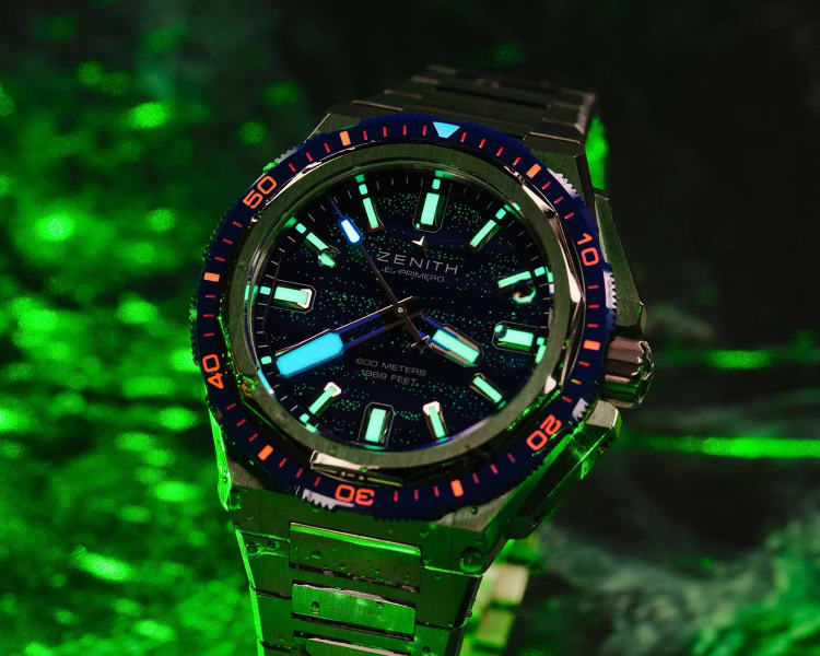 What sets this apart is how it balances hardcore capability with a level of style that elevates it beyond the standard model. The wave-textured, no-date dial in that brilliant blue, combined with the monochromatic scheme and innovative lume effects, creates a watch that's more attractive than anyone expected from this line. It's like Zenith took their tough diver and gave it a sophisticated edge, making it appealing for guys who want performance without sacrificing looks.