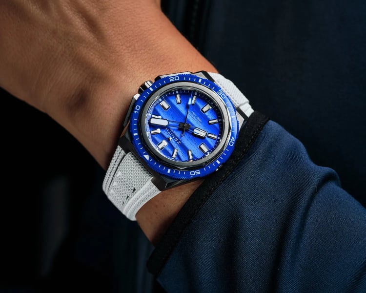 Start with the dial—it's where the magic happens. Instead of the usual repeated pattern of Zenith's old-school star logo, they've layered on a three-dimensional wave texture that gives it depth and movement. Done in a striking brilliant blue, it shifts the feel from purely utilitarian to something more refined, almost elegant. To keep things clean and focused, they've stripped out any extra colors; all the markings, lume, and details on the dial and bezel stick to pure white. It's a subtle shift, but it makes the watch feel more put-together, like upgrading from work boots to something you could wear to a nice dinner without missing a beat.